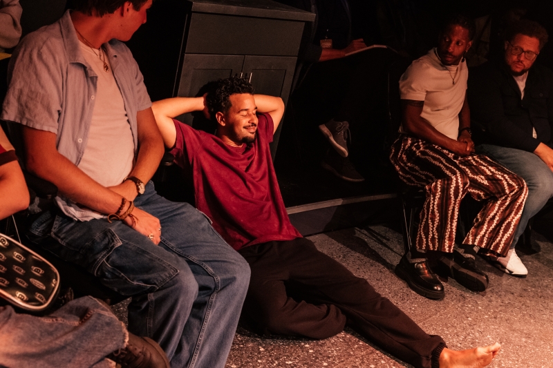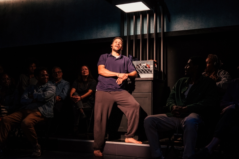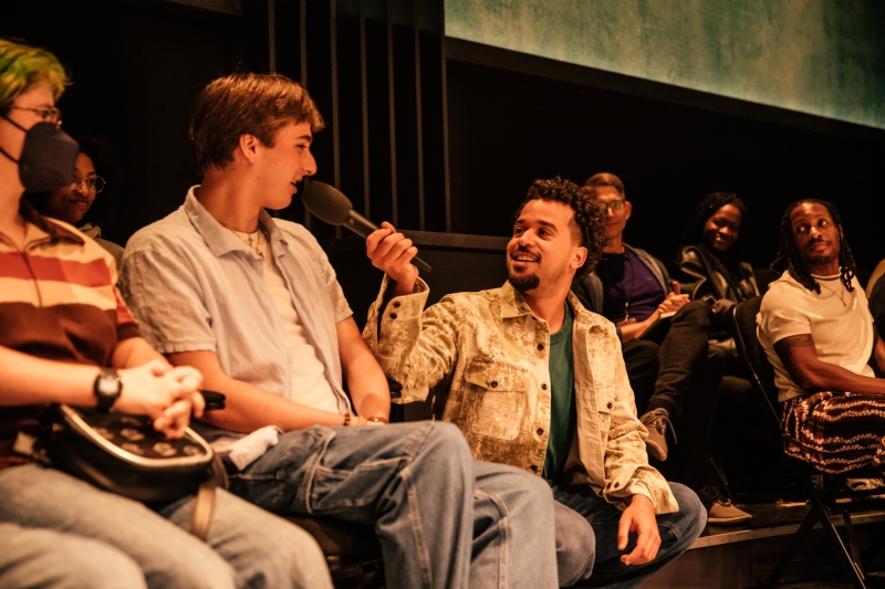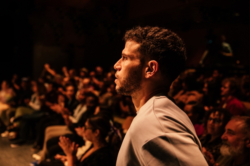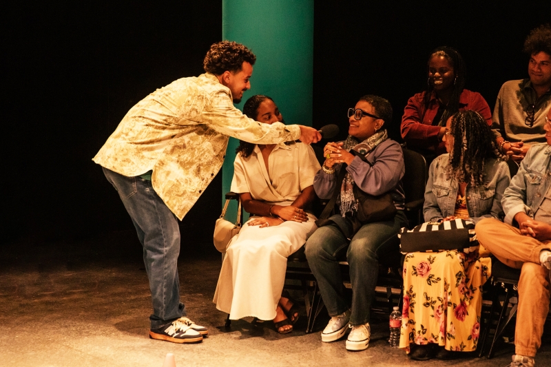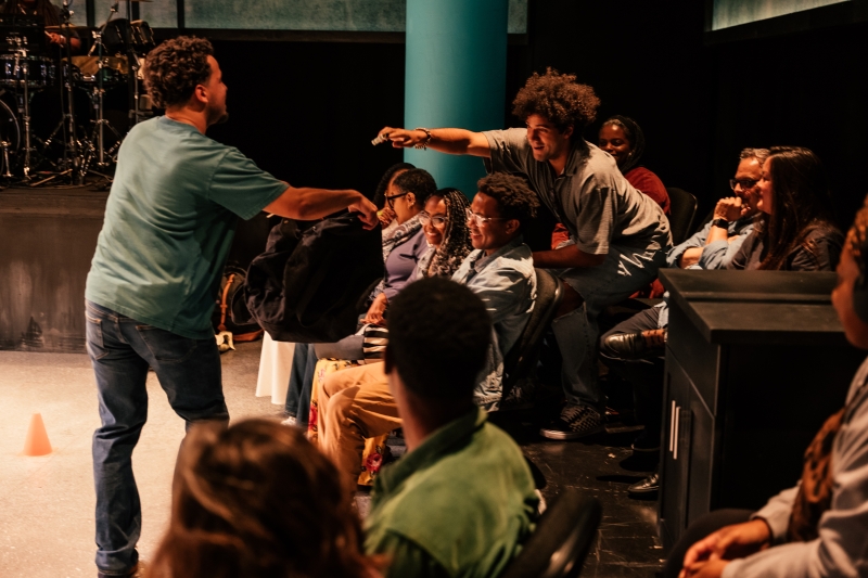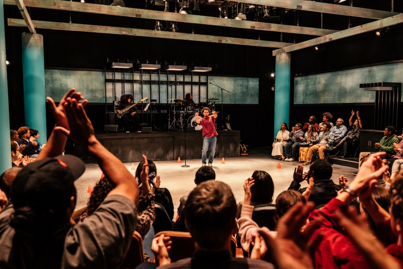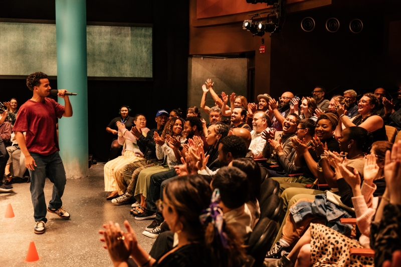 L-R: Marlon Alexander Vargas and Audience in littleboy/littleman at Geffen Playhouse. Directed by Nancy Medina. Photo by Jeff Lorch.