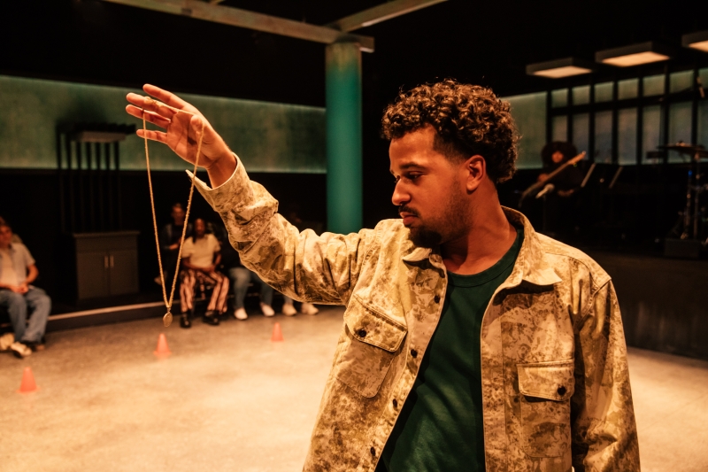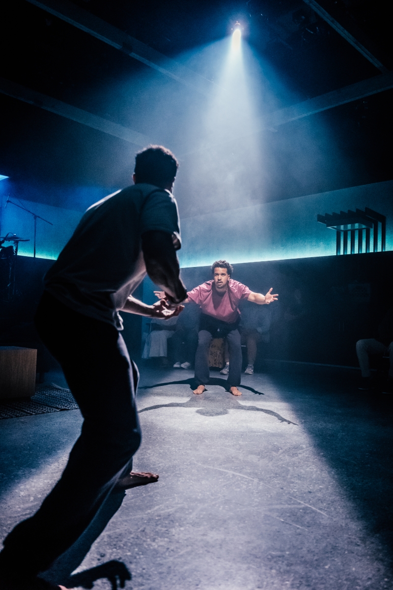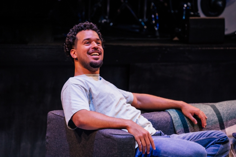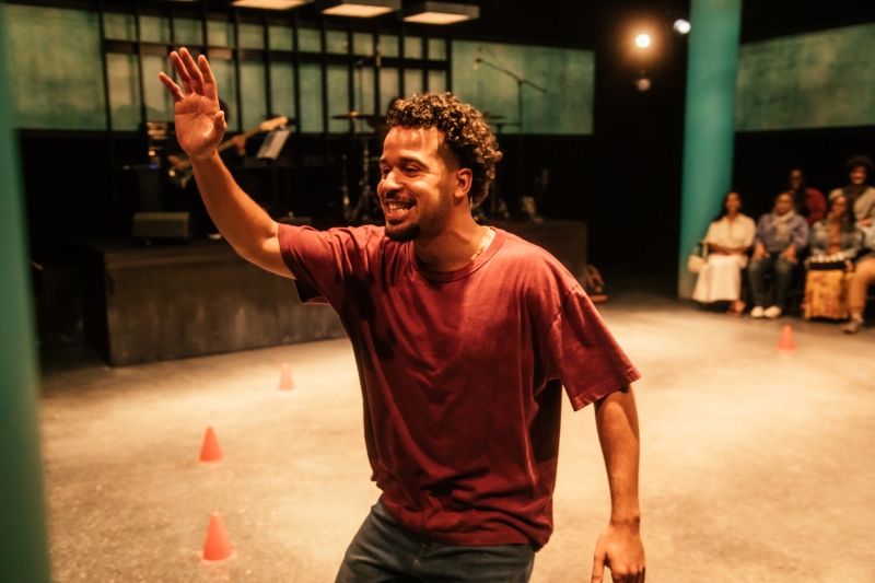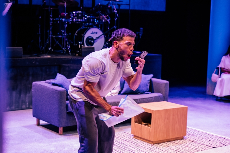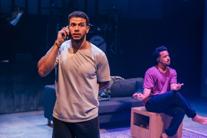L-R: Marlon Alexander Vargas and bassist Tonya Sweets in littleboy/littleman at Geffen Playhouse. Directed by Nancy Medina. Photo by Jeff Lorch.