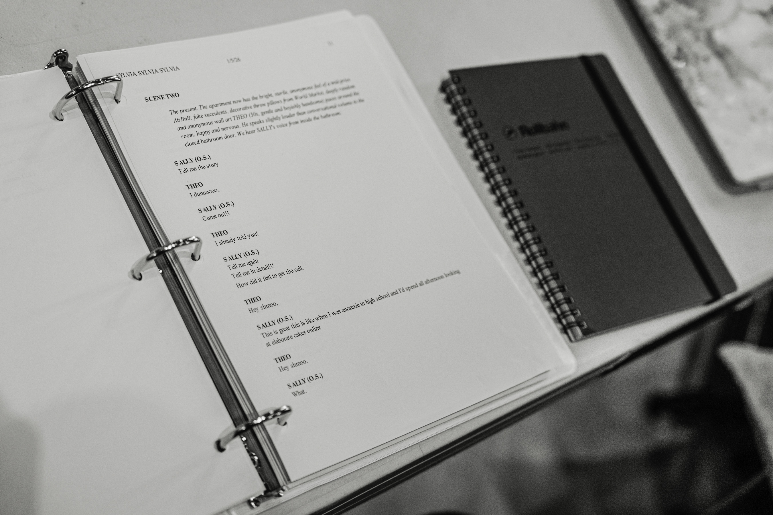 A copy of the script of SYLVIA SYLVIA SYLVIA in the rehearsal room of SYLVIA SYLVIA SYLVIA at Geffen Playhouse. Photo by Jeff Lorch.