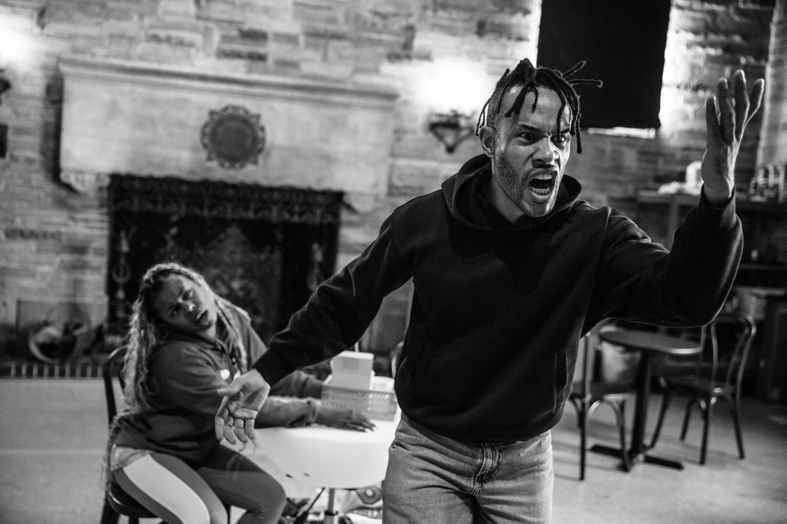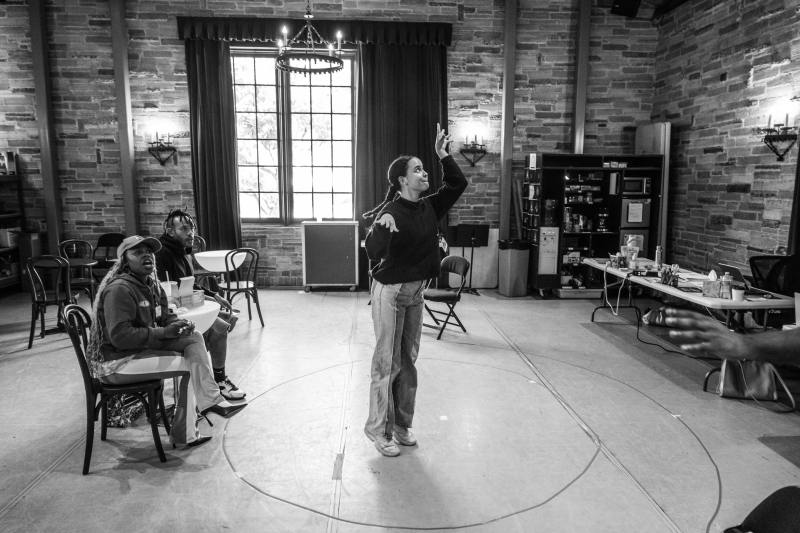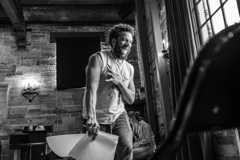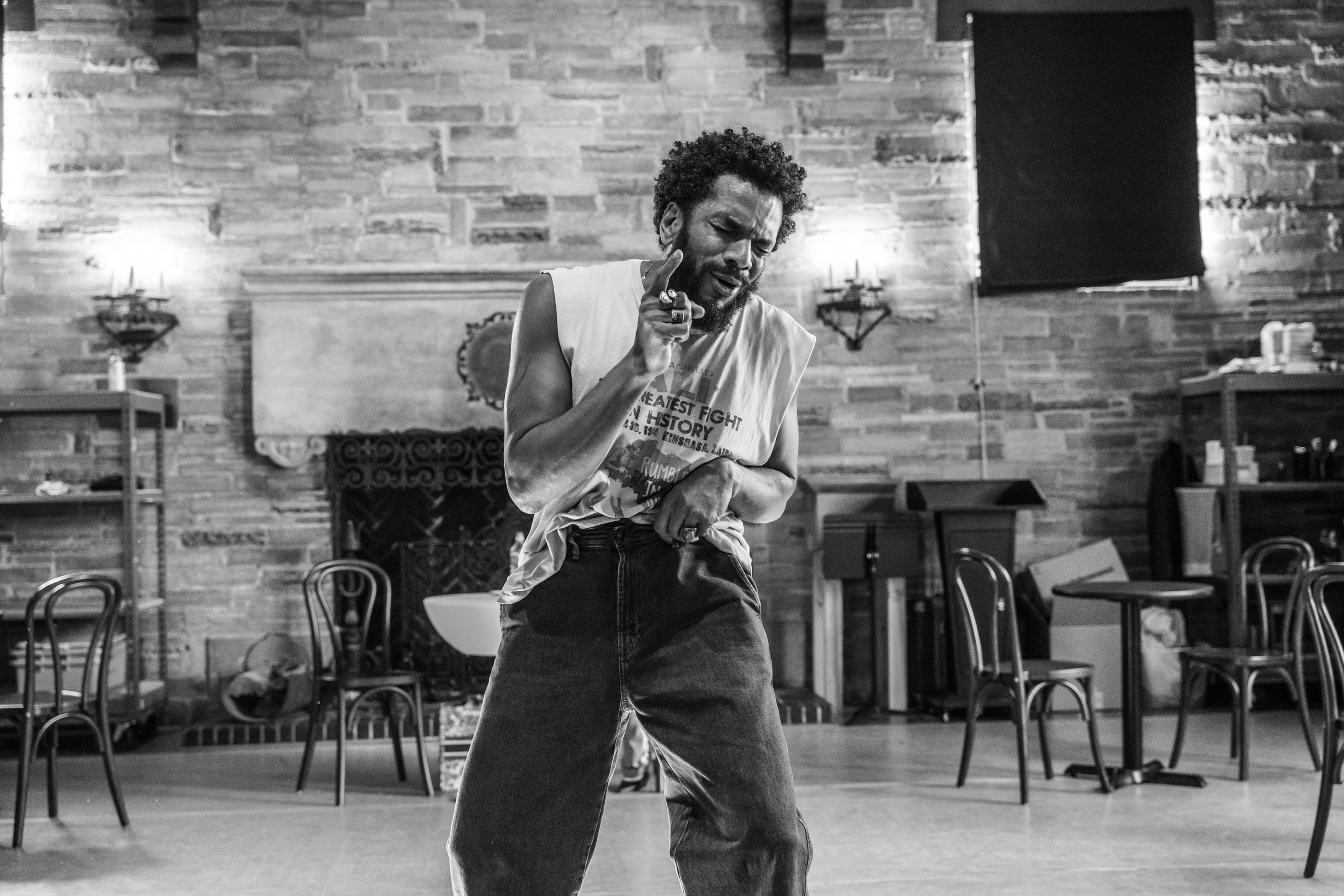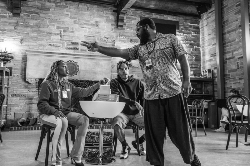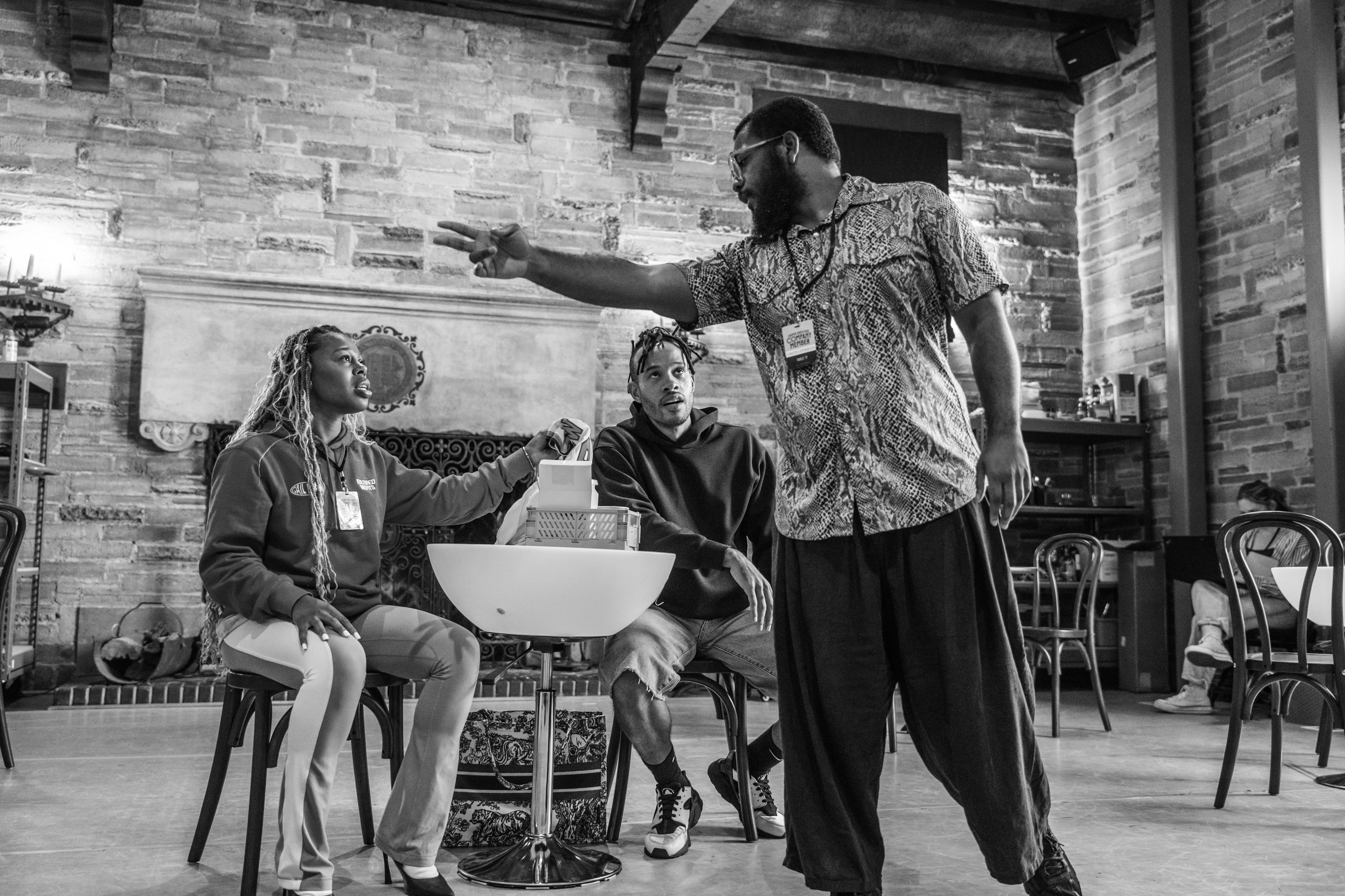 Biko Eisen-Martin in rehearsal for Table 17 at Geffen Playhouse. Photo by Jeff Lorch.