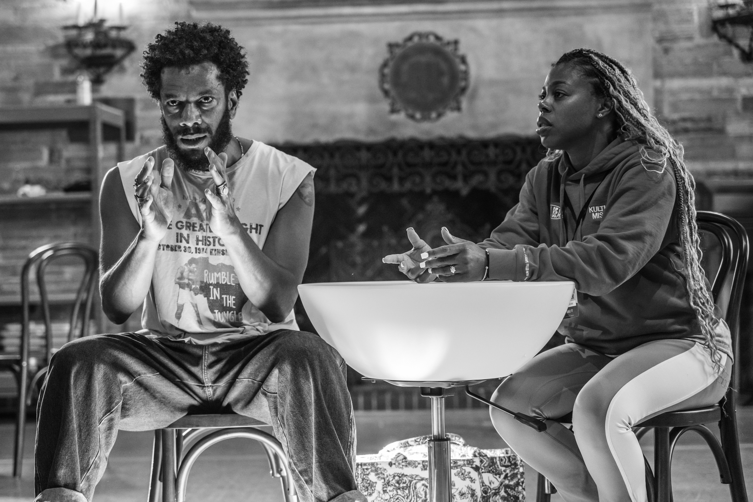 L-R: Biko Eisen-Martin and Gail Bean in rehearsal for Table 17 at Geffen Playhouse. Photo by Jeff Lorch.