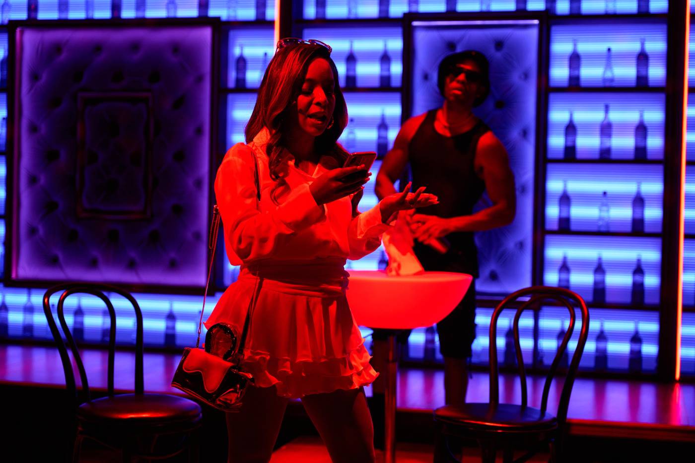 L-R: Biko Eisen-Martin and Kara Young in Table 17 at MCC Theater. Directed by Zhailon Levingston. Photo by Daniel J. Vasquez.