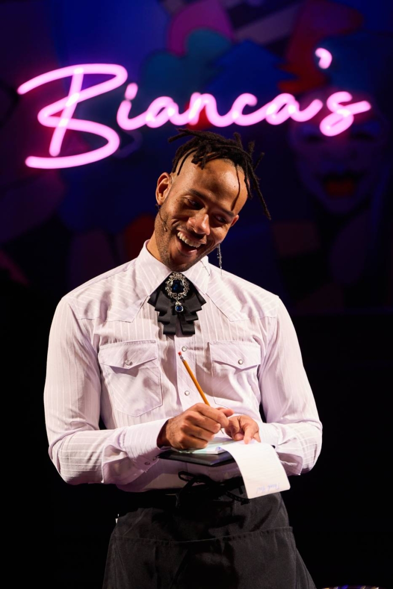 Biko Eisen-Martin in Table 17 at MCC Theater. Directed by Zhailon Levingston. Photo by Daniel J. Vasquez.
